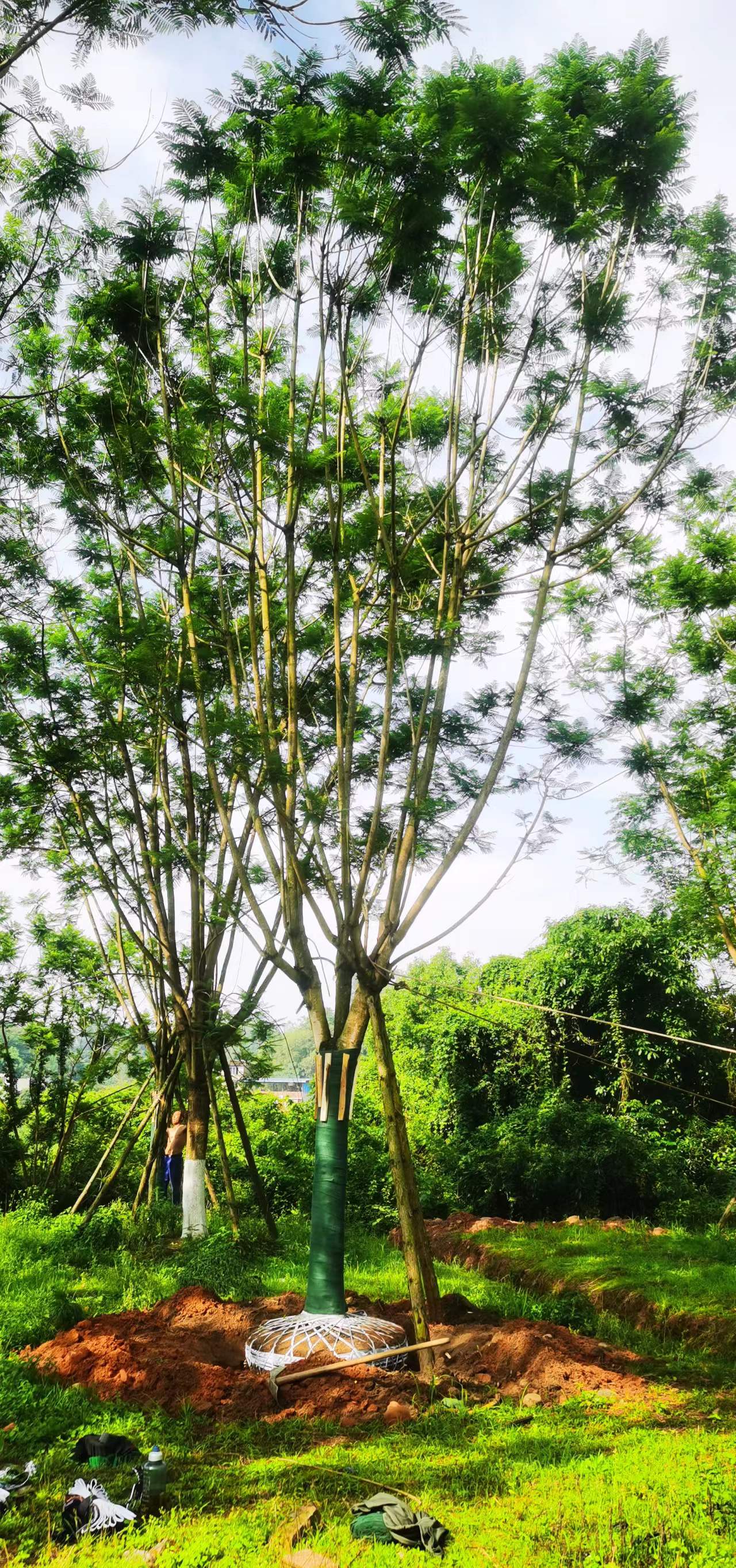 成片種植的藍花楹需要規劃好合適的間距,一般在一米到一米五左右比較合適,在種植過后我們就需要澆灌一次定根水,最好是用木樁將其固定,防治被風吹歪樹形。